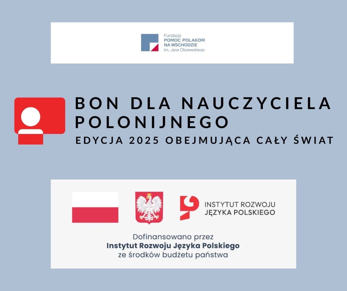 Z wielką wdzięcznością dzielimy się wiadomością, że nauczyciele polonijni naszej szkoły w bieżącym roku otrzymali wsparcie finansowe w ramach przedsięwzięcia „Bon dla nauczyciela polonijnego – edycja 2025 obejmująca cały świat”, realizowanego za pośrednictwem Fundacji „Pomoc Polakom na Wschodzie” im. Jana Olszewskiego. Jest to symboliczne, lecz niezwykle ważne podziękowanie za trud, zaangażowanie oraz oddaną pracę u podstaw polskiej edukacji na Litwie. Jesteśmy niezmiernie wdzięczni za okazane wsparcie, docenienie wysiłku nauczycieli oraz troskę o rozwój i zachowanie polskiej tożsamości narodowej wśród młodego pokolenia.