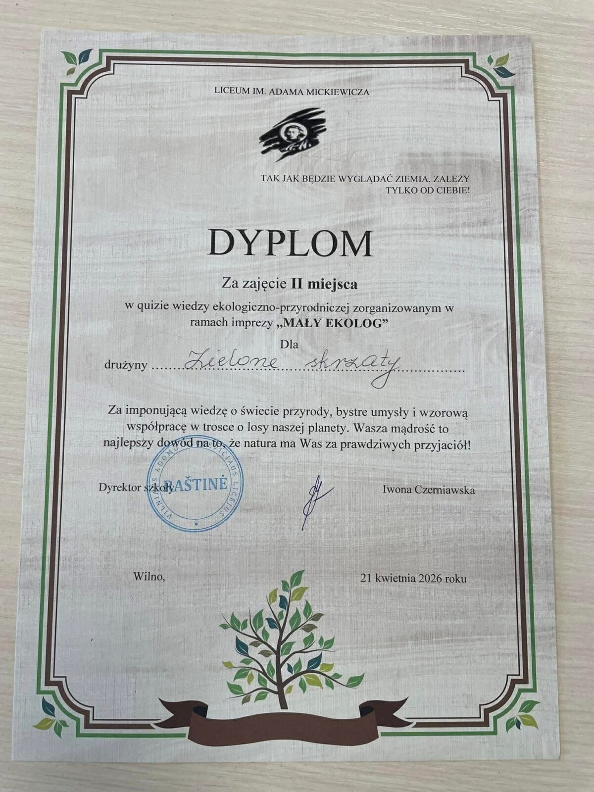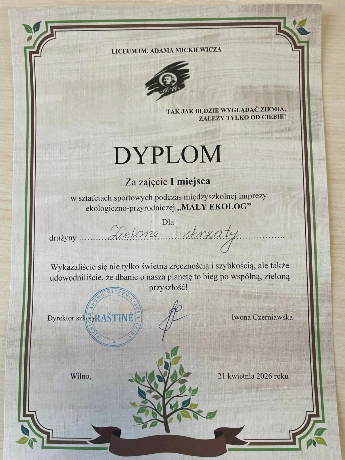Balandžio 21 d. mokiniai dalyvavo ekologiniame-gamtiniame renginyje „Mały ekolog“, kuris vyko Adomo Mickevičiaus licėjuje. Renginys buvo skirtas skatinti mokinių domėjimąsi gamta, ekologija ir atsakingu požiūriu į aplinką.
