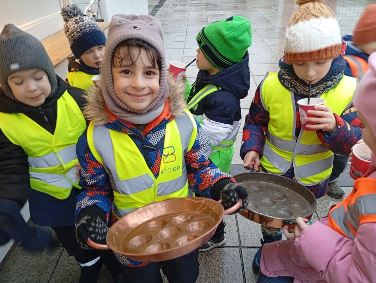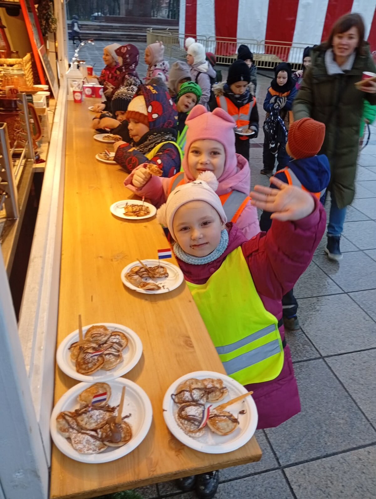 Gruodžio 11 d. 0A priešmokyklinukai leidosi į smagią žiemos išvyką į Katedros aikštę. Vaikai grožėjosi nuostabiai papuošta eglute, spindinčia šventinėmis girliandomis. Pasistiprinę gardžiais olandiškais blyneliais ir šilta aromatinga arbata, mažieji dar turėjo progą pasimėgauti žiemos pramogomis Bernardinų parke.