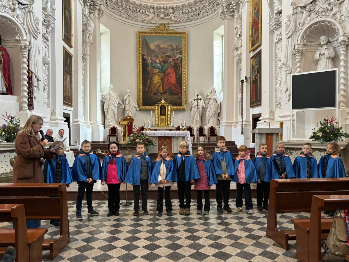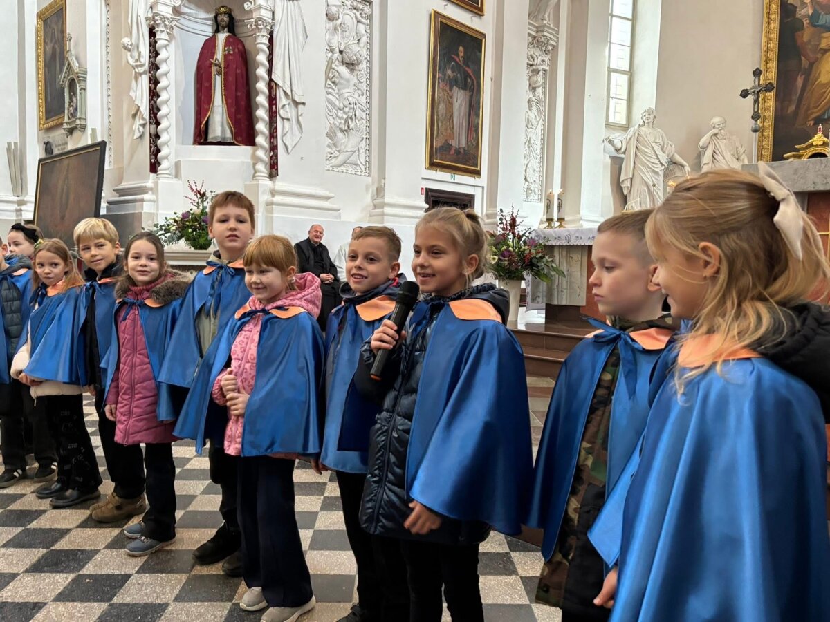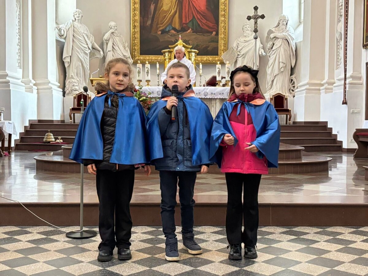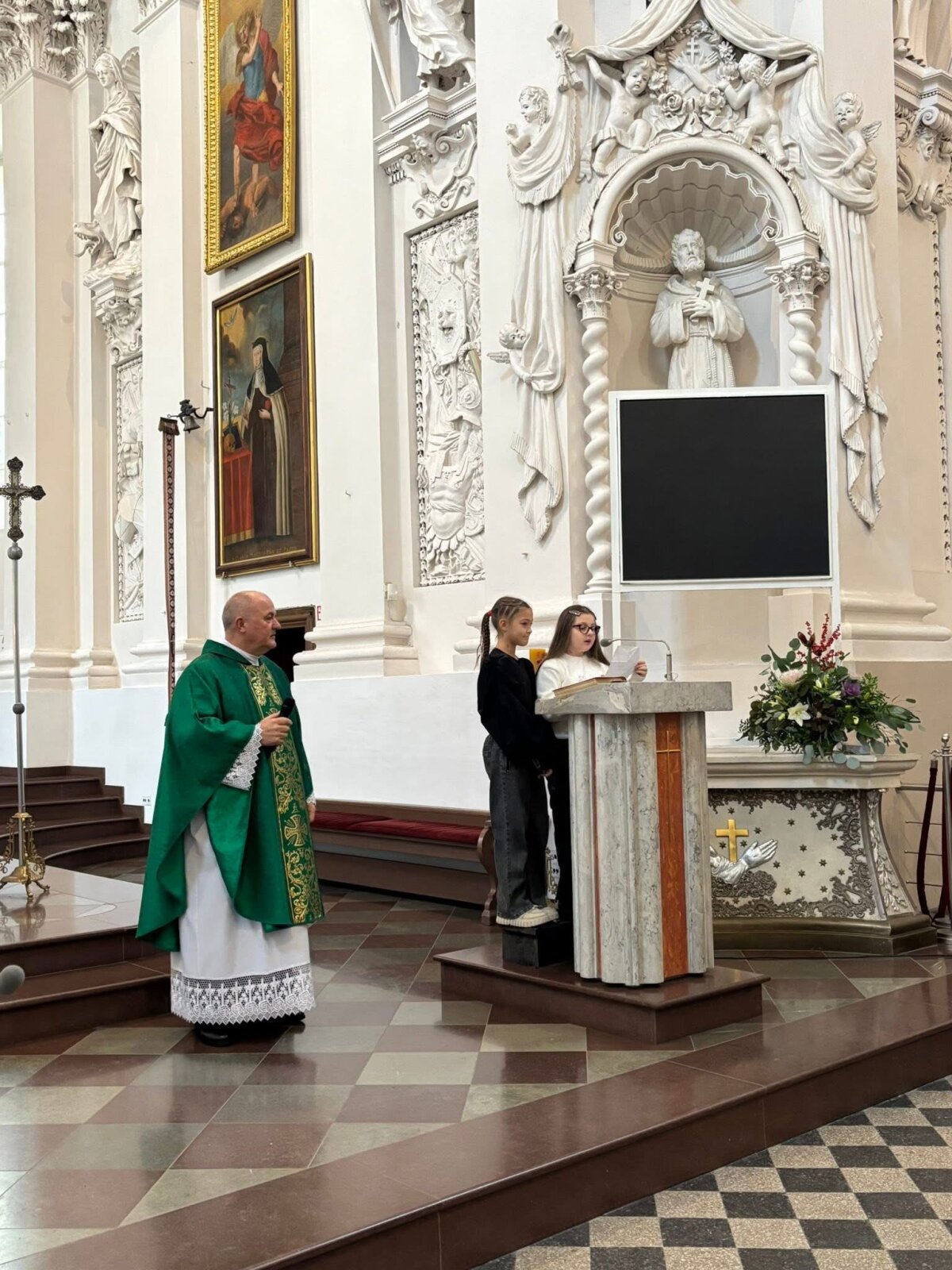 Šventinė diena prasidėjo iškilmingomis Šv. Mišiomis, kurioms vadovavo kunigas prelatas Wojciech Górlicki. Pirmokai nuoširdžiai giedojo, deklamavo ir su dideliu džiaugsmu dalijosi savo talentais, parodydami, ko jau spėjo išmokti nuo mokslo metų pradžios.