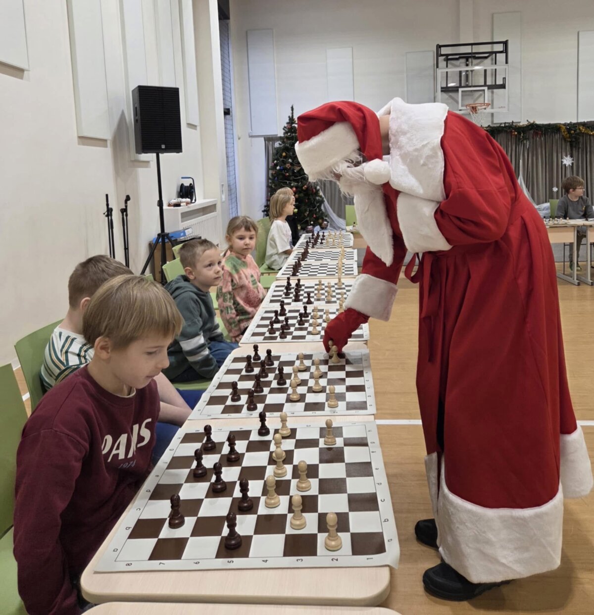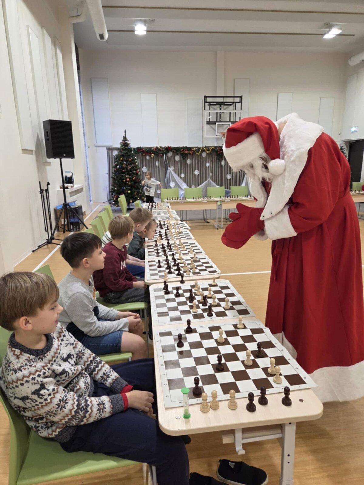 Kalėdinė šachmatų simultana su Kalėdų Seneliu mūsų mokykloje