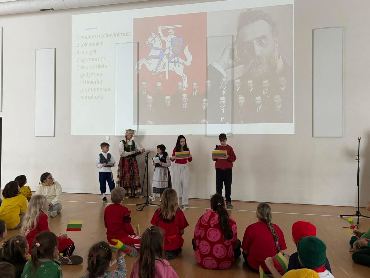 Minėjimo metu prisiminėme Lietuvos istorijai svarbius įvykius, pagerbėme signatarus, kalbėjome apie laisvės, vienybės ir pilietiškumo svarbą šiandien. Skambėjo patriotinės dainos, mokiniai deklamavo eiles, dalijosi mintimis apie tai, ką jiems reiškia Lietuva ir laisvė.