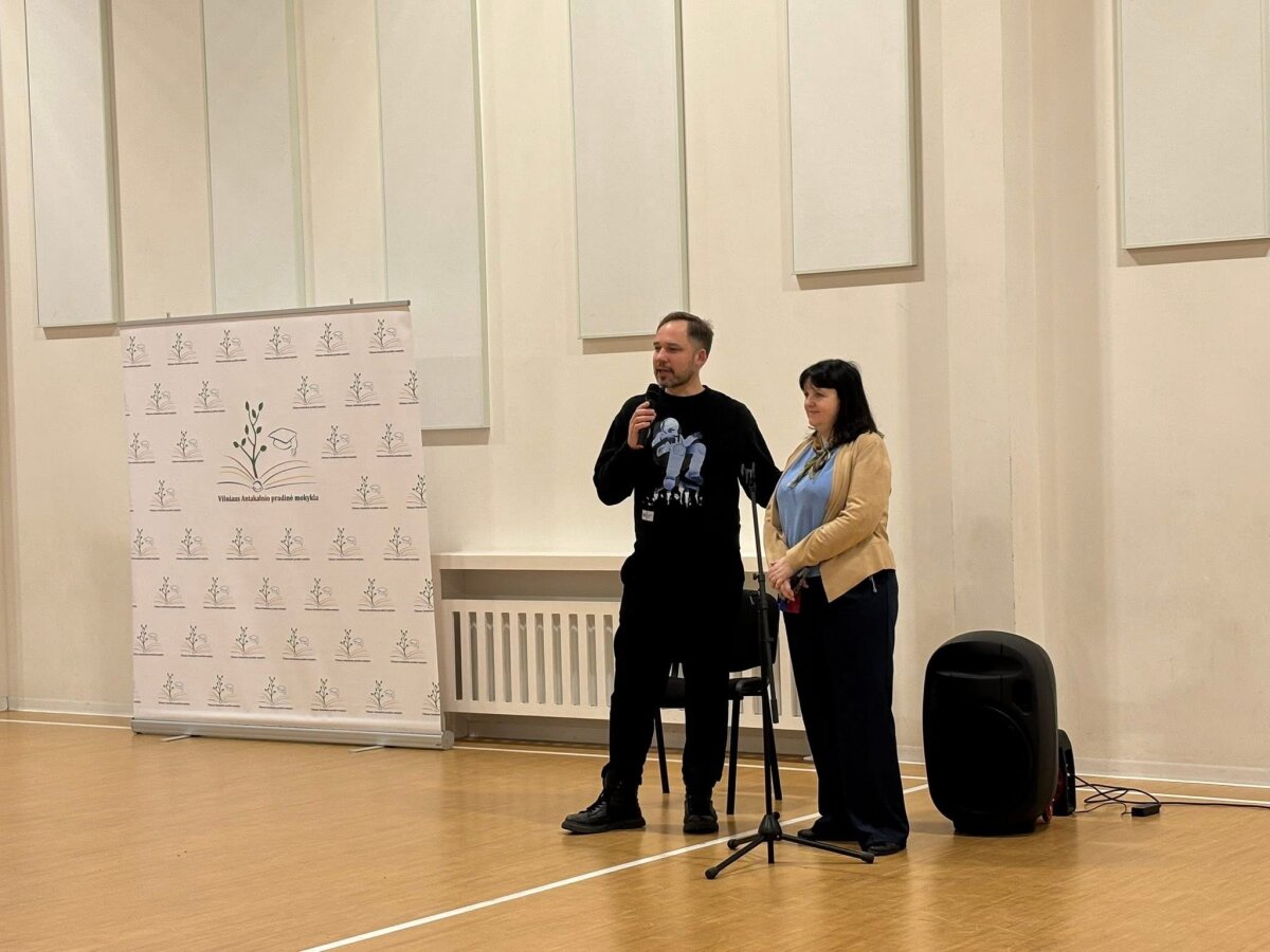 Svečias mokiniams papasakojo, kaip gimė mintis sukurti miuziklą pagal garsųjį kūrinį „Mažasis princas“, pristatė spektaklio aktorius bei pasidalijo kūrybinio proceso užkulisiais. Susitikimo metu taip pat buvo kalbama apie vertybes, tarpusavio supratimą ir tai, ko vaikai gali pasimokyti iš suaugusiųjų, o suaugusieji – iš vaikų.