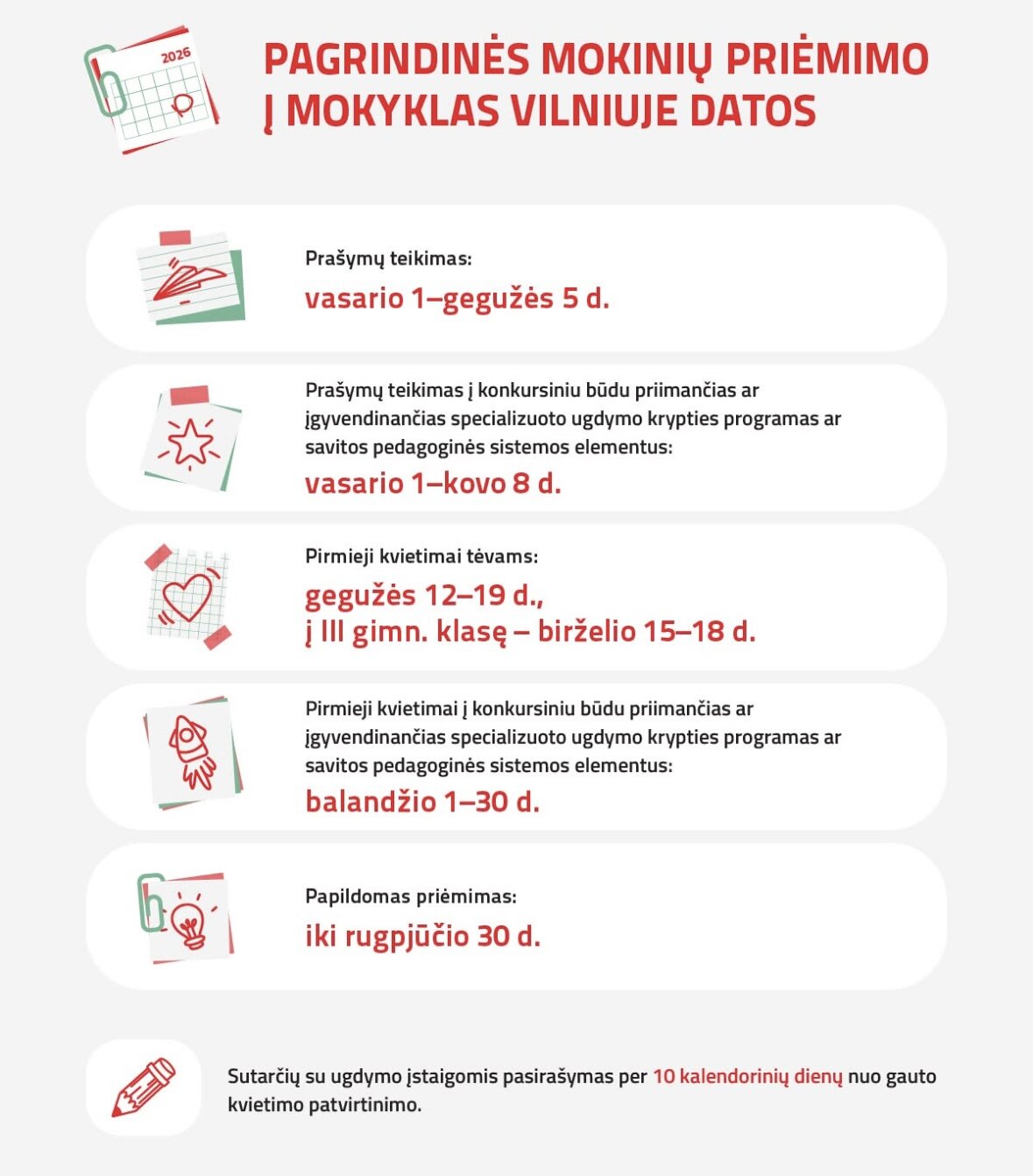 kviečiame susipažinti su mokinių priėmimo į mokyklas Vilniuje tvarka ir svarbiausiomis datomis.